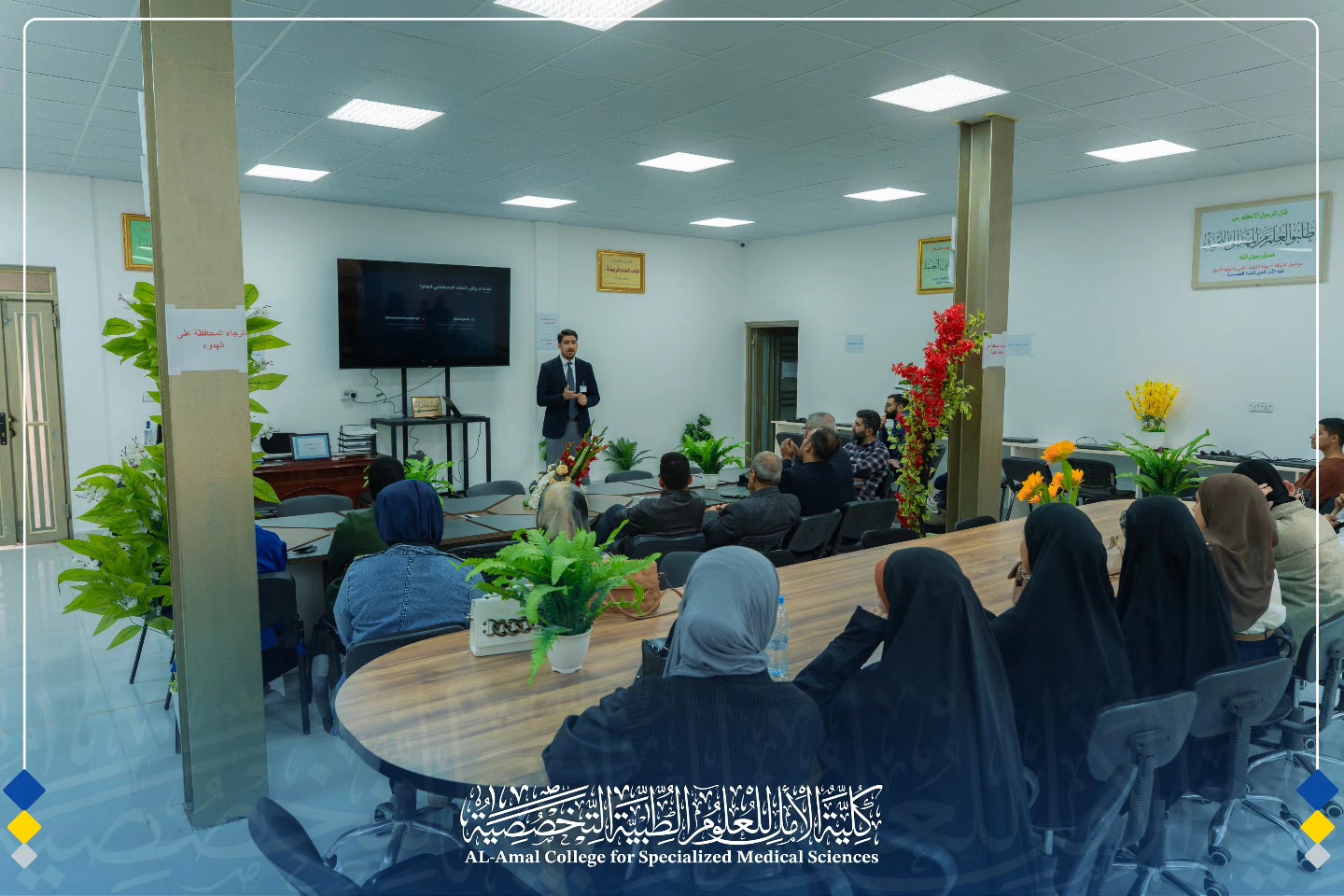 Concluding the ceremony, the Dean presented the committee members with the "Creativity and Excellence Medal" of Al-Amal College. This gesture served as an expression of gratitude for their dedication and as an incentive to encourage their continued excellence and creativity in serving the College’s scientific and student community.